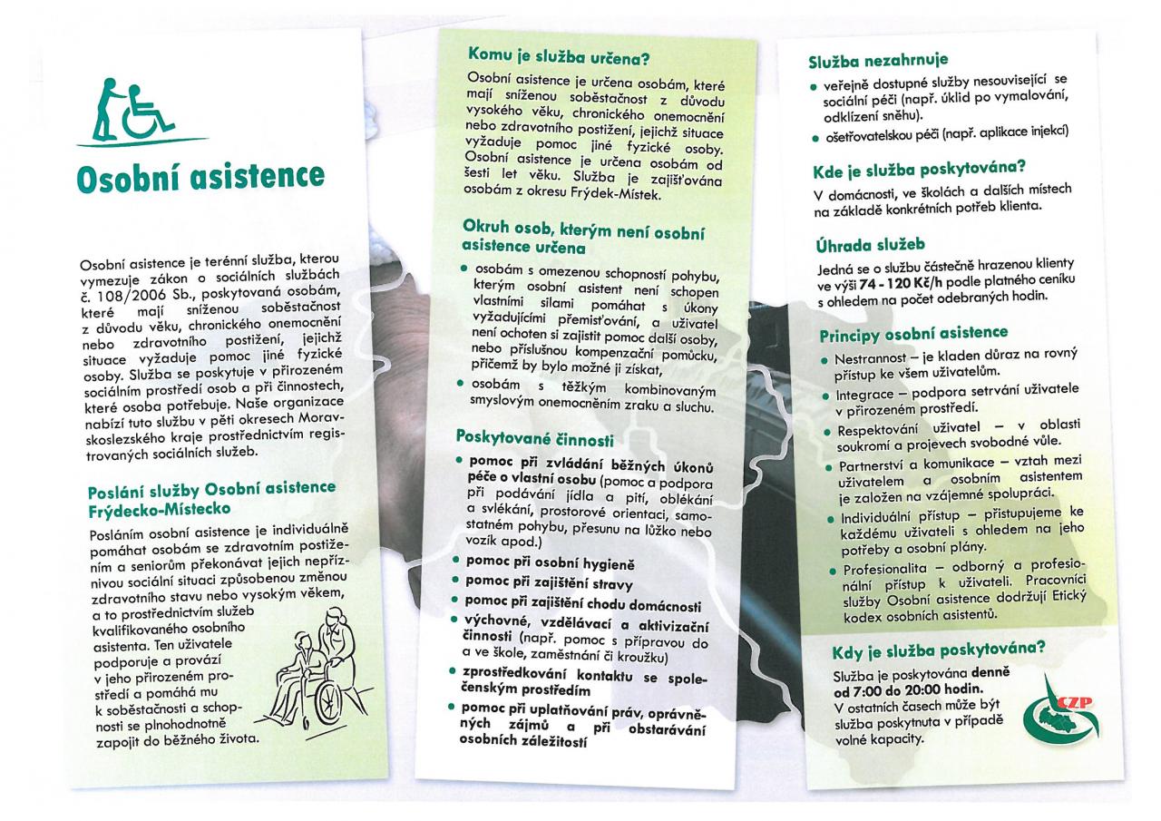 Dovolujeme si Vás informovat o volné kapacitě služby osobní asistence, která je poskytována uživatelům ve Frýdku - Místku a jeho okolí.